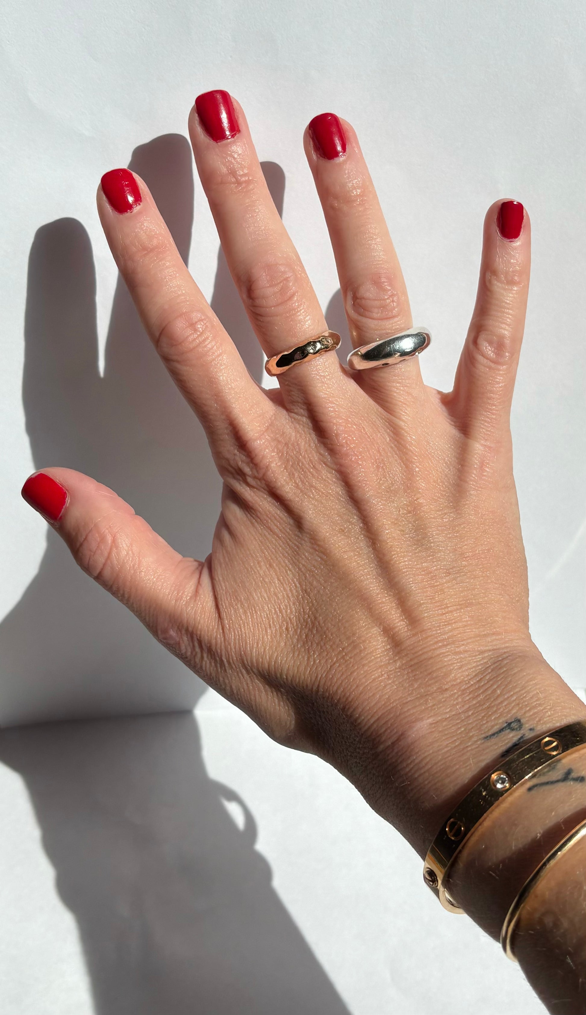 Handcrafted using the lost wax method, each ring has a warm, organic curvature that feels smooth against the skin. Made to order in your choice of metal and size, no two pieces are ever exactly alike—because neither are you.