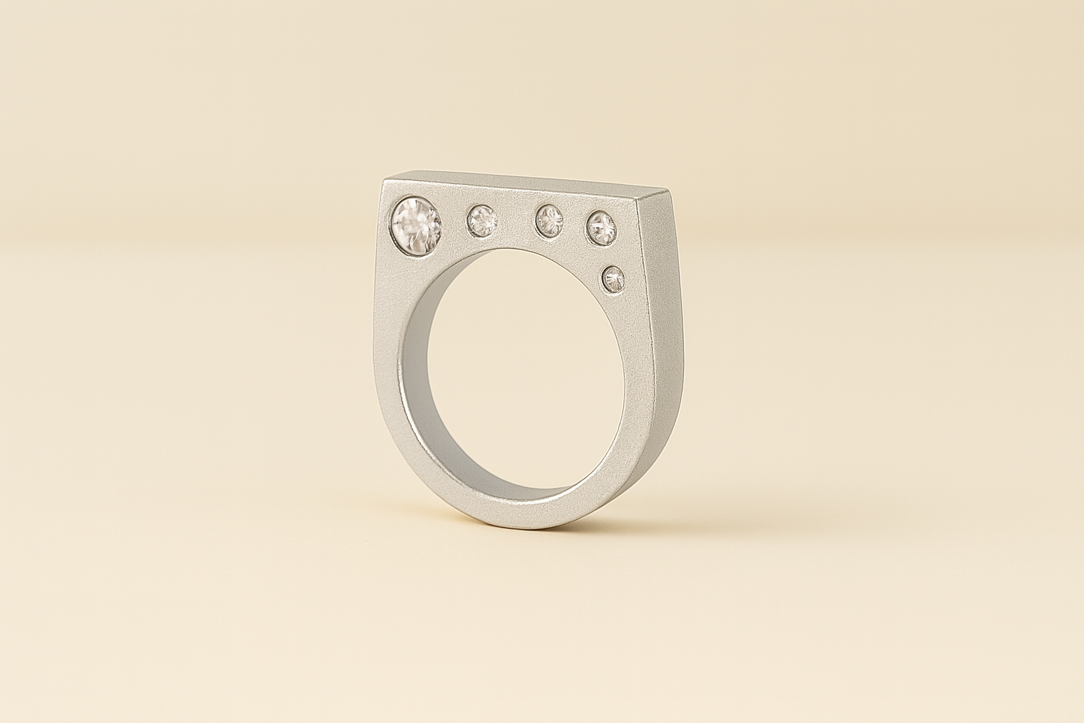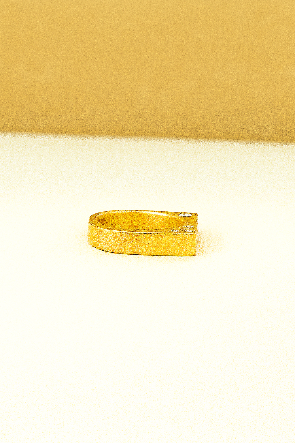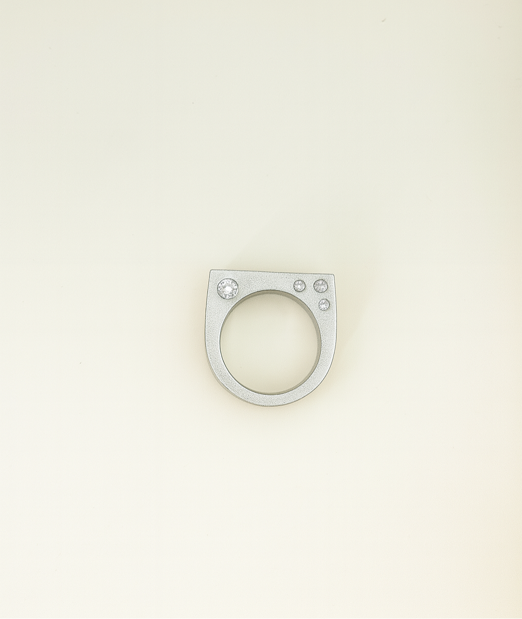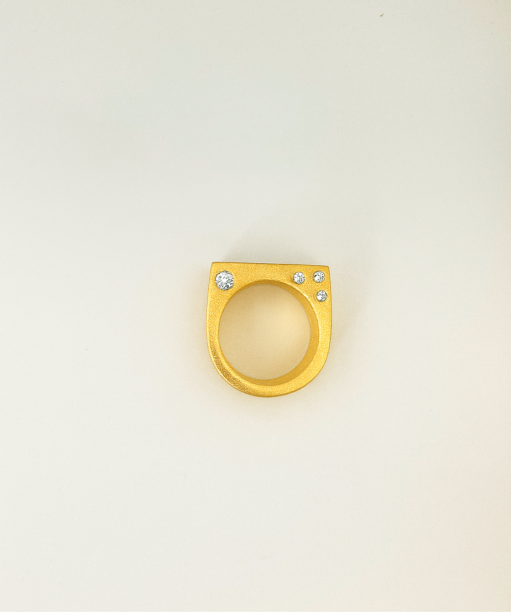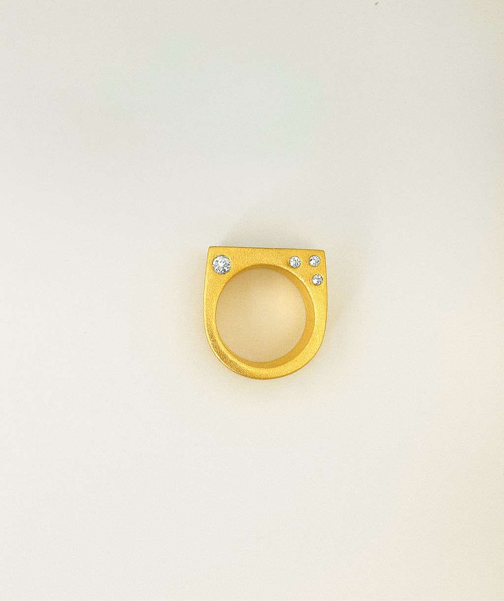 Designed with quiet elegance in mind, the Peek-A-Boo ring features 1.5-2mm flush-set white sapphires nestled along the inner side of a rectangular signet band. From the top, it appears minimal and unassuming—but tilt your hand, and a subtle flash of brilliance is revealed. This hidden detail makes the Peek-A-Boo ring feel like a personal treasure, meant to be discovered in a glance or shared with intention.